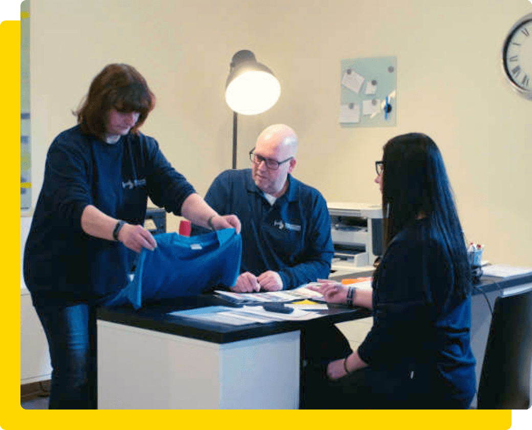 Sobald Sie unsere Musterbedruckungen und -bestickungen erhalten und freigegeben haben, veredeln wir Ihre Arbeitskleidung entsprechend Ihren Vorgaben.