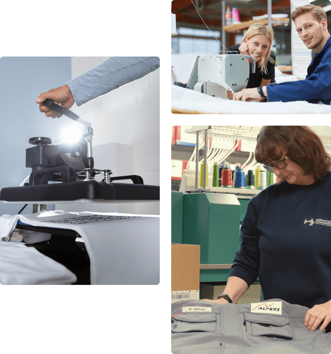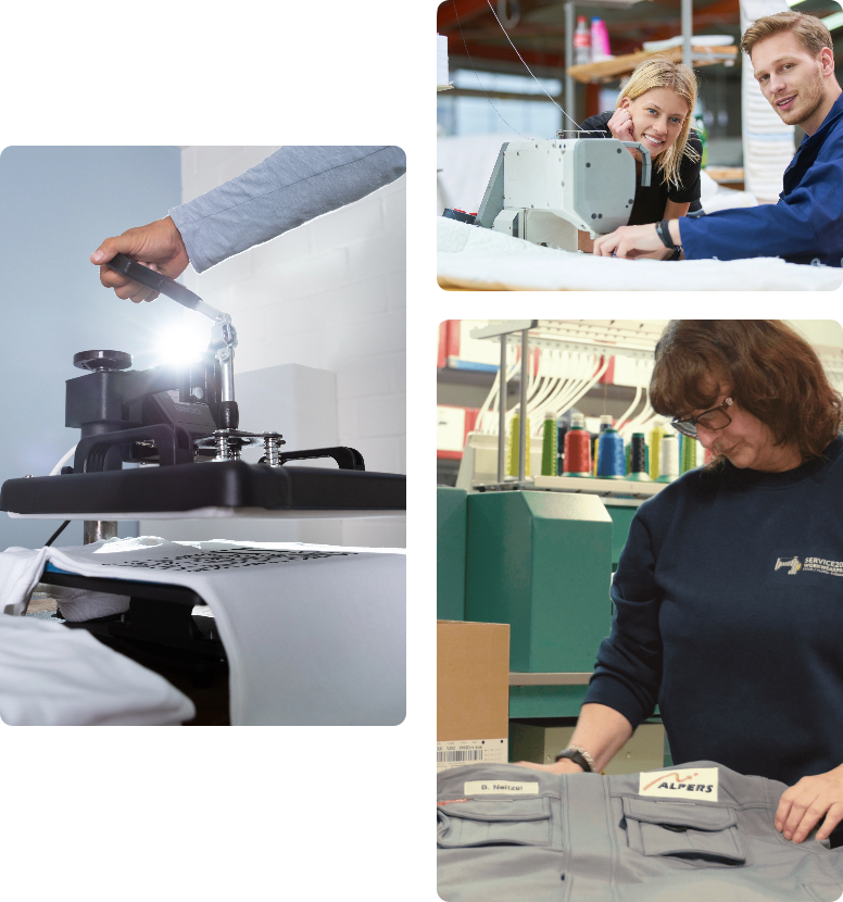 Namhafte Berufsbekleidung von renommierten Herstellern, veredelt mit dem perfekt zu Ihren Bedürfnissen passenden Verfahren – das ist unser Versprechen. Damit Sie und Ihre Mitarbeiter sich mit unseren Produkten rundum wohlfühlen, gehört zu unserem Service eine umfassende Beratung zur richtigen Berufsbekleidung und der darauf und auf Ihr Unternehmen abgestimmten Veredelungstechnik. Ein perfekt eingespieltes Team, modernste Maschinen, innovative Veredelungstechniken und die ständige Optimierung unserer Arbeitsprozesse stellen sicher, dass Ihre Textilien so veredelt sind, dass sie zu Ihren Bedürfnissen und der Rolle Ihrer Mitarbeiter als überzeugende Markenbotschafter passen. Ihre Zufriedenheit ist uns ein echtes Anliegen!